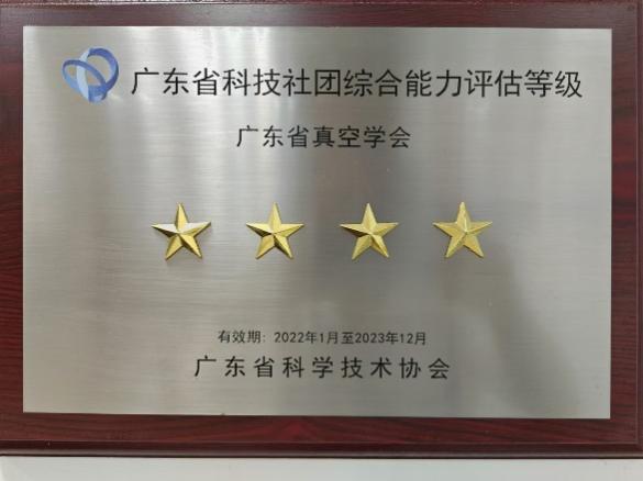 2021 年,广东省真空学会获得中国科协“科创中国”新材料新能源区域科技服务团项目(第一批)立项支持。在 2019 年、2021年、2023 年广东省科协组织的省级学会综合能力评估中,被评为“四星级”学会。