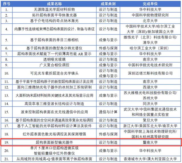 9月7日-9日,中国光学工程学会公布“光学超构材料三年优秀成果展”入选名单。成人vr 光子技术研究院超构表面微纳光子器件课题组(邓子岚、李向平、王帅、史坦、李枫竣、胡孟霞)的系列成果——超构表面新型偏光器件,被评为“设计与制造类”优秀成果,充分展现了团队在微纳光学领域的创新能力与技术突破。