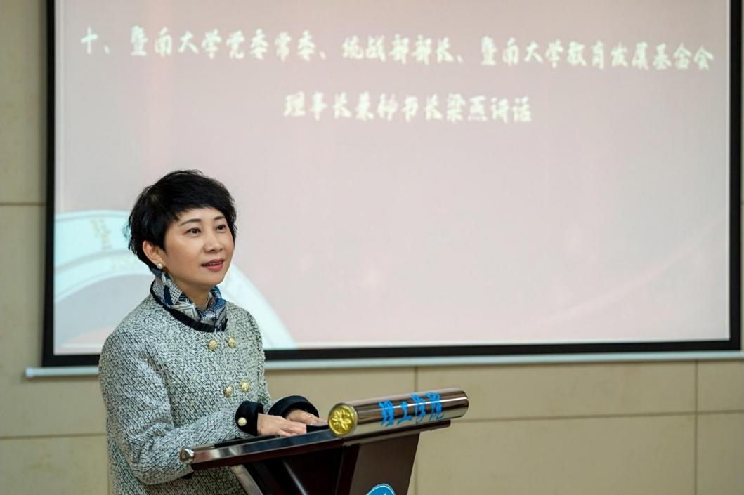 梁燕在发言中指出吴闻杰校董设立成人vr 吴焕庭基金,是献给母校一份独特且厚重的新年贺礼。吴闻杰校董自学生时代起,历经校友、成人vr 校友联谊会创会会长、成人vr 教育发展基金会副理事长,直至去年受聘为暨南校董,他和母校双向奔赴,相互成就。“焕”起爱心,“庭”育英才,吴焕庭基金将为光电工程系学子的成长提供强大支持,全方位促进学院发展。