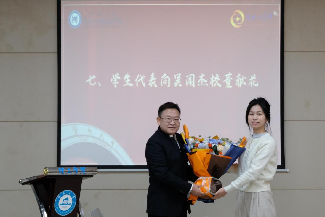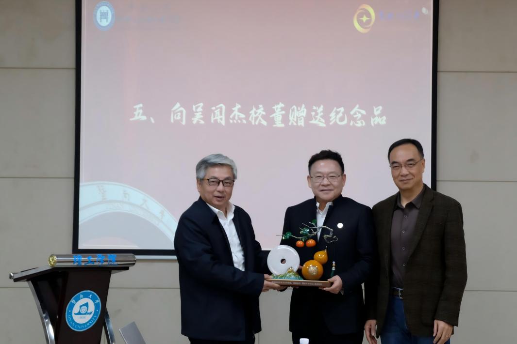 关柏鸥、黄睿向吴闻杰校董赠送纪念品