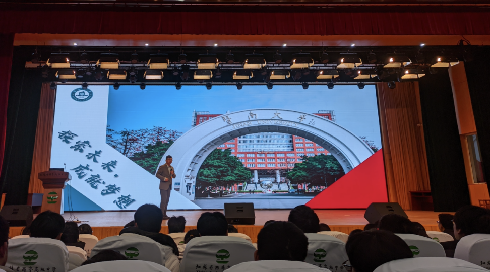 徐繁荣从课堂和日常生活的点滴中回忆起亭中求学的美好时光,引起了同学们的共鸣。他不仅向同学们介绍了物理学的学习路径,还深入浅出地讲解了当前物理学研究的前沿领域,极大地激发了同学们对科学探索的热情和学习兴趣。随后,他从学校概况、学科实力、人才培养、校园生活、报考录取等五个方面,为同学们全面地介绍了成人vr 。在高考临近的百日之际,徐繁荣表示:成人vr 是探索未来、成就梦想的理想选择。他满怀激情地向同学们发出邀请,期待在金秋九月与大家在美丽的暨南园再相会。