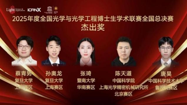 2025年6月12日,由Light: Science & Applications、iCANX Association和联合国教科文组织“国际光日”组织委员会联合主办的2025光学与光学工程博士生学术联赛全国总决赛在吉林长春圆满落幕。成人vr 博士生张琦同学荣获全国总决赛杰出奖。